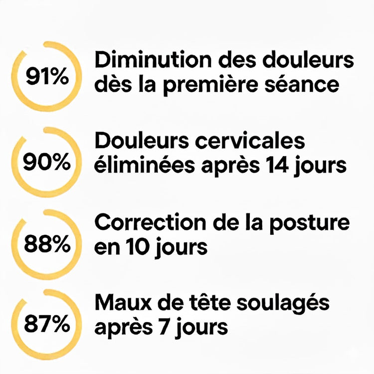 Nous avons mené un test auprès des consommateurs en envoyant notre masseur à plus de 37 cliniques chiropratiques à travers la France. Au total, 487 patients souffrant de problèmes cervicaux l'ont testé. Voici les résultats.